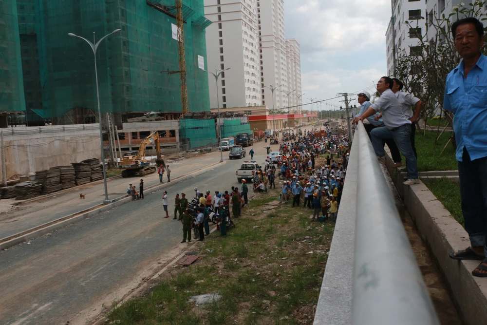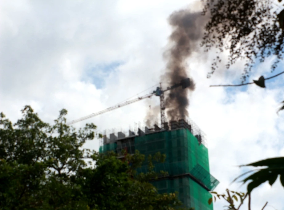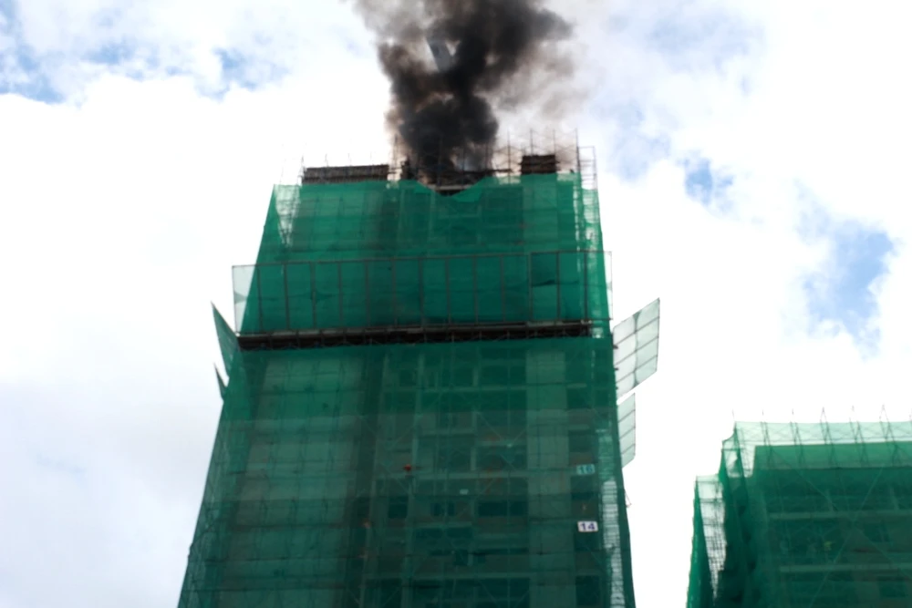 Tại hiện trường, cột khói bốc cao hàng chục mét, ngọn lửa liên tục cháy xung quanh cần cẩu. Nhiều công nhân thấy cháy dữ dội, đã tháo chạy khỏi chung cư. Khi đó, trên cần cẩu vẫn còn có một công nhân đang làm việc, bị mắc kẹt chưa xuống kịp.