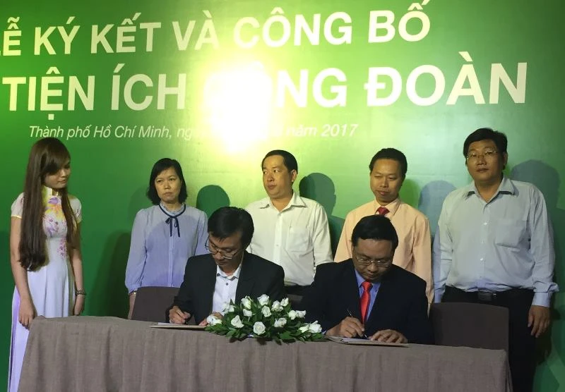 Các đơn vị ký kết phát hành thẻ tiện ích công đoàn. Ảnh: P.ĐIỀN