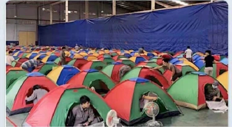 Công ty Công ty TNHH Bao bì Tâm Dương (khu công nghiệp Nhơn Trạch 3, Đồng Nai) dựng lều cho công nhân ở lại công ty để thực hiện sản xuất 3 tại chỗ. Ảnh: V.DŨNG