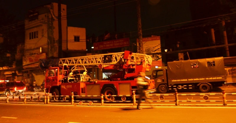 Sau đó, công an địa phương nhanh chóng đến ghi nhận sự việc. Đồng thời, xe cứu thương, nhân viên y tế được huy động. Ngoài ra, hàng chục cán bộ chiến sĩ PCCC quận 11 đưa xe thang chuyên dụng đến hiện trường, tiếp cận bên trong.