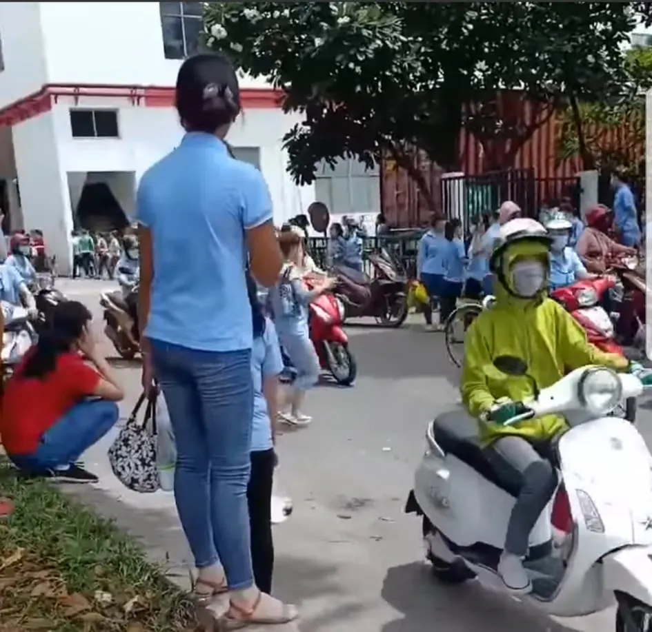Công nhân tập trung ở cổng rất đông để ra về sau khi biết công ty có ca nhiễm COVID-19
