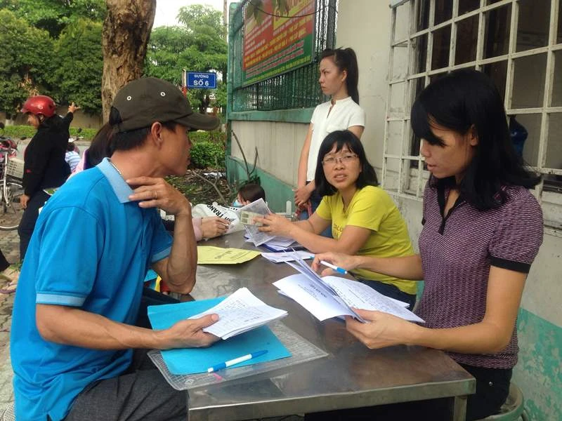 Công nhân nộp hồ sơ ứng tuyển vào Công ty TNHH Hansoll Vina. Ảnh: P.ĐIỀN