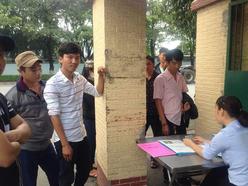 Xếp hàng chờ nộp hồ sơ vào Công ty TNHH Pungkook Việt Nam. Ảnh: P.ĐIỀN