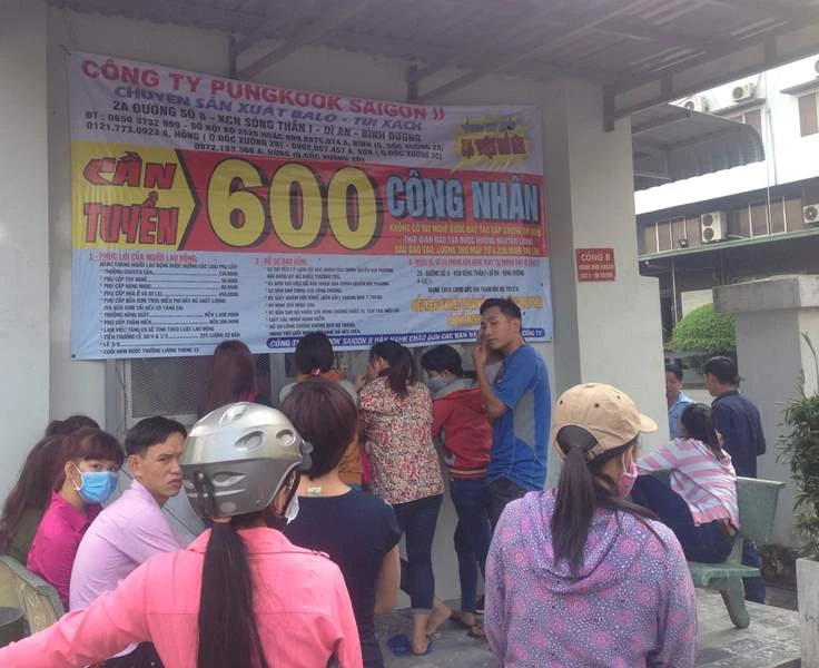 Nhu cầu tuyển dụng của các công ty và nhu cầu tìm việc của người lao động từ các địa phương tại KCN Sóng Thần (Dĩ An, Bình Dương) rất sôi động. Theo quan sát, từ sáng sớm hàng trăm lao động đã đổ về đây săm soi chế độ lương, phụ cấp, phúc lợi, thời gian làm việc, BHXH, thời gian tăng ca… để nộp hồ sơ ứng tuyển. Nhiều công ty có nhu cầu tuyển cả ngàn lao động, tuy nhiên trong buổi sáng mới chỉ tiếp nhận được vài chục hồ sơ và cho thử tay nghề để tính toán bậc lương ngay trong ngày.
