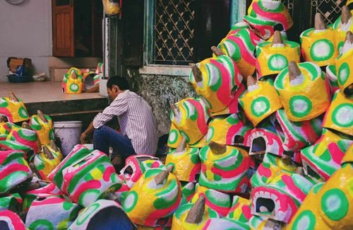 Rất nhiều đầu lân đã xong và chờ để trang trí thêm và đem ra bày bán. Ảnh: ĐỨC LỘC
