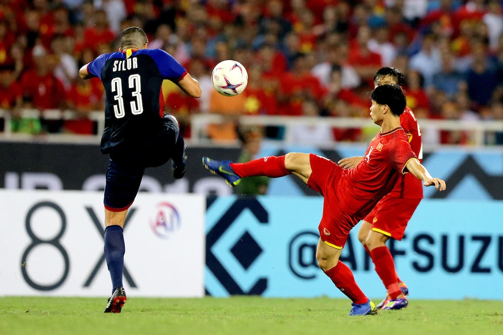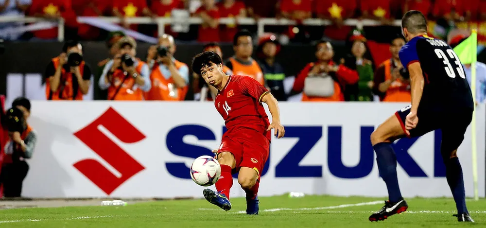 Công Phượng trong trận bán kết lượt về giữa Việt Nam và Philippines trên sân Mỹ Đình.