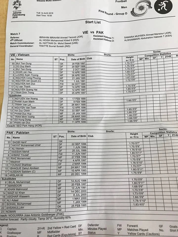 Một chiến thắng thậm chí có thể thắng đậm là điều mà thầy trò HLV Park Hang-seo hướng đến, bởi Olympic Pakistan vốn không mạnh do bị FIFA “cấm vận” 3 năm qua và họ chỉ mới vừa trở lại chính thức ở giải Asiad năm nay.