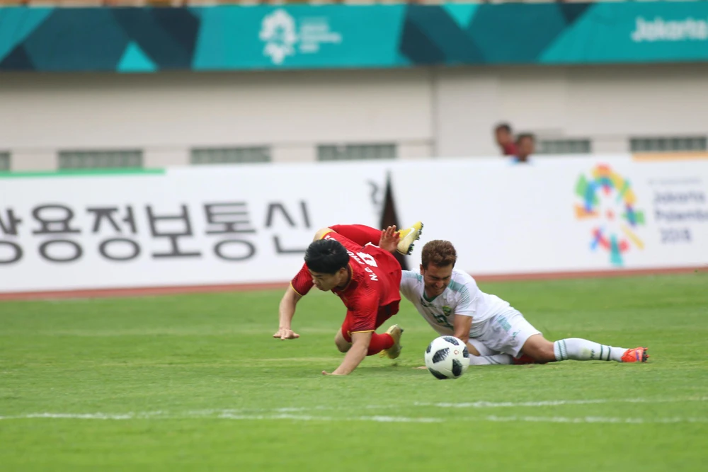 Phút 29, Văn Quyết nhận bóng lỗi bỏ lỡ một tình huống tấn công rất trống trải của Olympic Việt Nam.