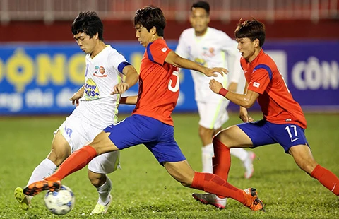Cơn mưa tầm tã trước giờ bóng lăn tưởng sẽ cản trở lối đá kỹ thuật chuyên giữ bóng và chuyền ngắn của đám trẻ U-21 HAGL nhưng ngược lại người bị hạn chế lại chính là các cầu thủ U-19 Hàn Quốc to hơn, trẻ hơn và khỏe hơn.
