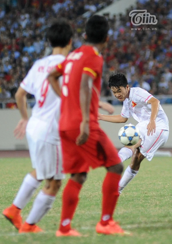 Ở phút 67, Văn Long khống chế bóng điệu nghệ ở trên không