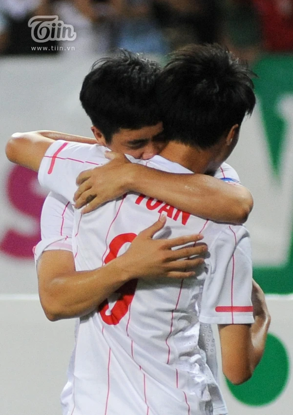 Và người đầu tiên chạy đến chia vui và ôm chặt lấy anh chính là Công Phượng.