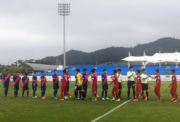 Nhập cuộc với đội hình xuất phát gồm hầu hết cầu thủ thường xuyên đá chính, U-22 Việt Nam nắm quyền kiểm soát bóng tốt và tạo ra nhiều sức ép hơn bên phần sân đội bạn. Tuy nhiên, trong khi hàng công chưa mở khóa nổi khung thành Busan FC thì lưới của thủ môn Minh Long đã phải rung lên ở phút 10. Từ đường tạt bóng bên cánh phải, tiền đạo Lee Gunwoo khôn khéo di chuyển cắt mặt trung vệ U-22 Việt Nam trước khi tung cú sút cận thành.