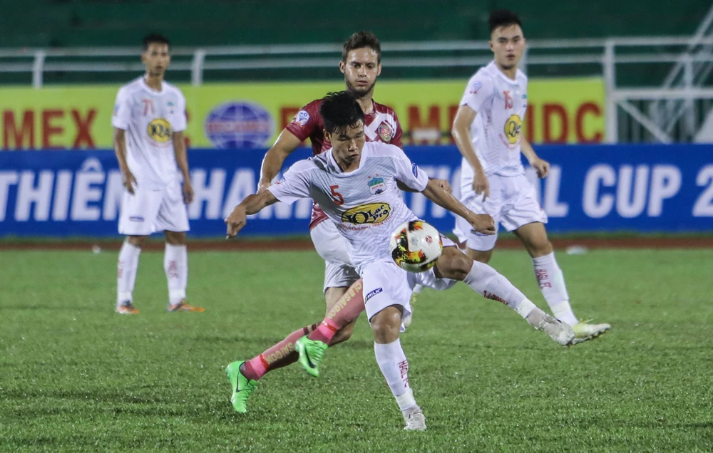 Hiệp 1 là một hiệp đấu cống hiến của hai đội. Hai bên liên tục tìm cách tổ chức và tiếp cận cầu môn nhà. Marcelo, Cruz phía chủ nhà có những cơ hội rõ để mở bàn. Ngược lại hai lần HA Gia Lai cũng tiếp cận cơ hội nhưng Công Phượng và vài đồng đội của mình không thể biến thành bàn thắng.