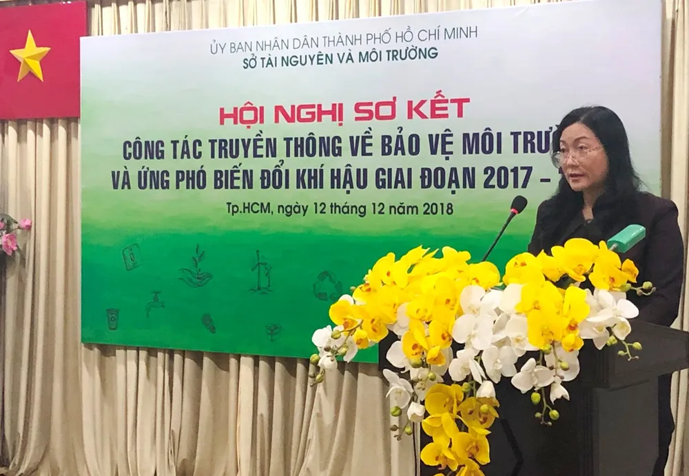 Bà Thanh Mỹ, Phó GĐ Sở TN&MT TP.HCM, trình bày báo cáo sơ hội công tác truyền thông về bảo vệ môi trường và ứng phó biến đổi khí hậu năm 2017-2018
