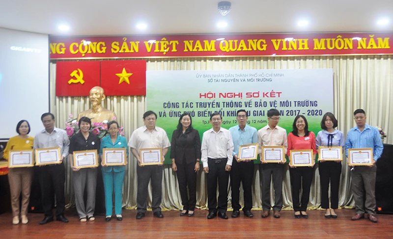 Sở TN&MT TP.HCM vừa tổ chức lễ sơ kết công tác truyền thông về bảo vệ môi trường và ứng phó biến đổi khí hậu giai đoạn 2017-2020. Tham dự hội nghị có đại diện của HĐND TP, Ban Tuyên giáo Thành ủy, sở ban ngành đoàn thể; đại diện UBND các quận, huyện trên địa bàn; ông Đỗ Trung Tín, Phó Chủ tịch UB MTTQ Việt Nam TP.HCM; ông Trần Phong - Cục Trưởng Cục Bảo vệ môi trường Miền Nam.