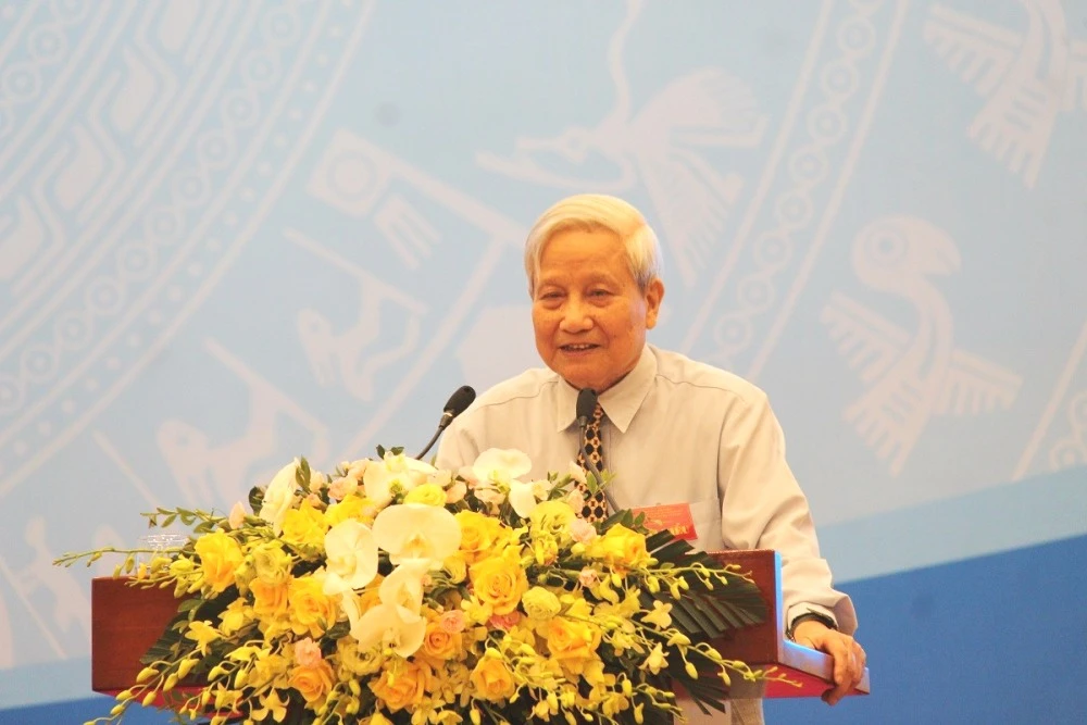 Ông Hà Đăng, nguyên Trưởng ban Tư tưởng văn hóa Trung ương (nay là Ban Tuyên giáo Trung ương) phát biểu tại hội thảo. Ảnh: VT
