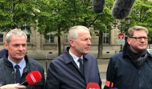 Công tố viên Paris Remy Heitz (giữa) trả lời phỏng vấn. Ảnh: LE PARISIEN