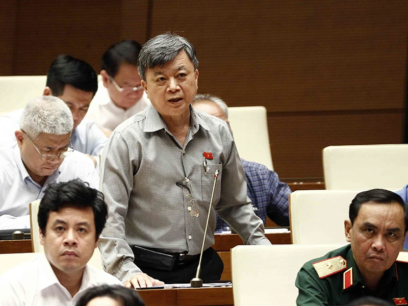 Đại biểu Trương Trọng Nghĩa chất vấn bộ trưởng Xây dựng về vấn đề quản lý xây dựng ở khu vực đô thị. Ảnh: TTXVN