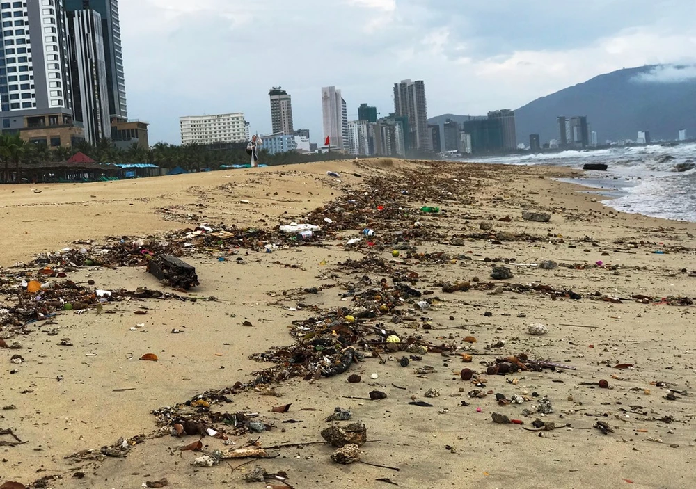 Nước thải kèm theo rác tuồn ra biển, sóng lại dồn rác vào bờ biển.