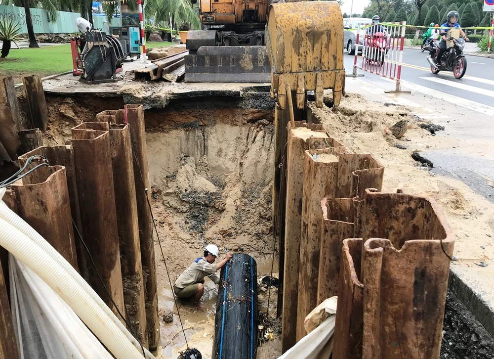 Công trình thu gom nước thải để tách nước thải với nước mưa vẫn đang ì ạch.