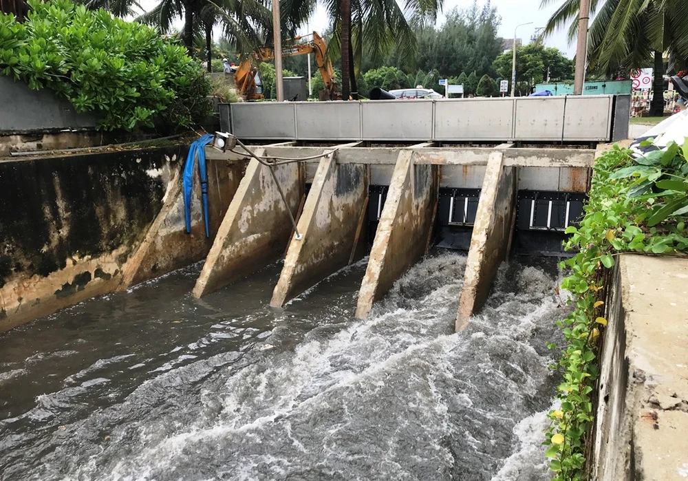 Nước thải phá nắp cống xả tuồn ra biển.