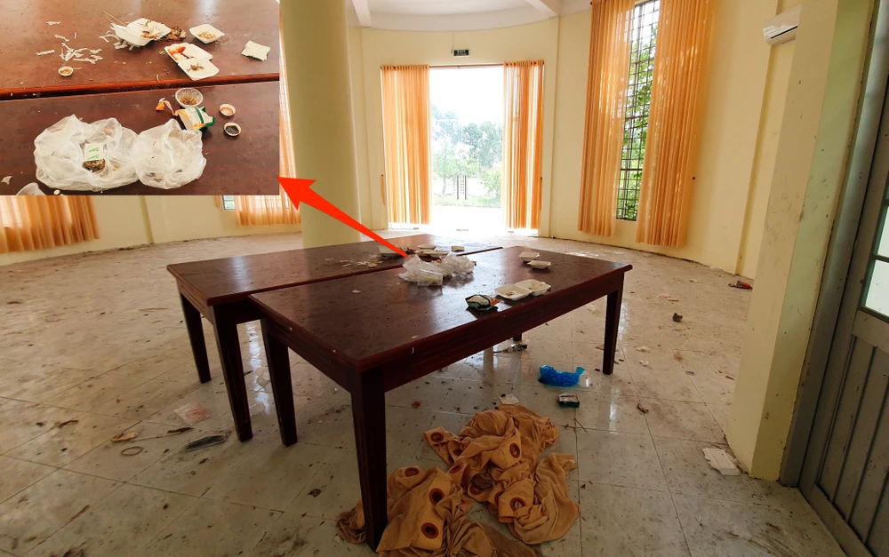 Do không được bảo quản, phía bên trong của công trình nhếc nhác và đầy rác (Hình ảnh ghi nhận hồi tháng 4-2021). Ảnh: CHÂU ANH