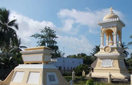 Ngôi mộ đứng của đốc phủ Trần Bá Lộc, ngôi mộ cạnh bên của công tử Trần Bá Thọ.