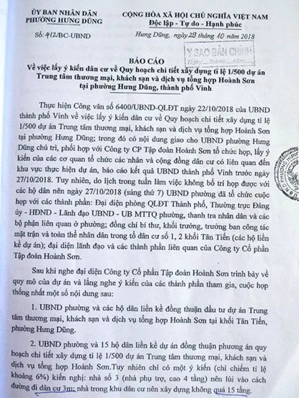 Báo cáo lấy ý kiến dân cư trước khi cấp phép xây dựng công trình.