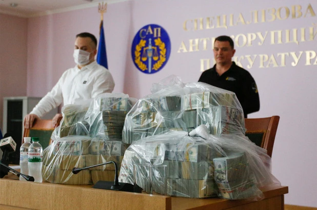 Theo Cục Chống Tham nhũng quốc gia Ukraine, sáu triệu USD là khoản tiền hối lộ lớn nhất trước này mà cơ quan này tịch thu. Khoản tiền này được bỏ trong các túi nhựa đem tới công khai tại cuộc họp báo ngày 13-6.