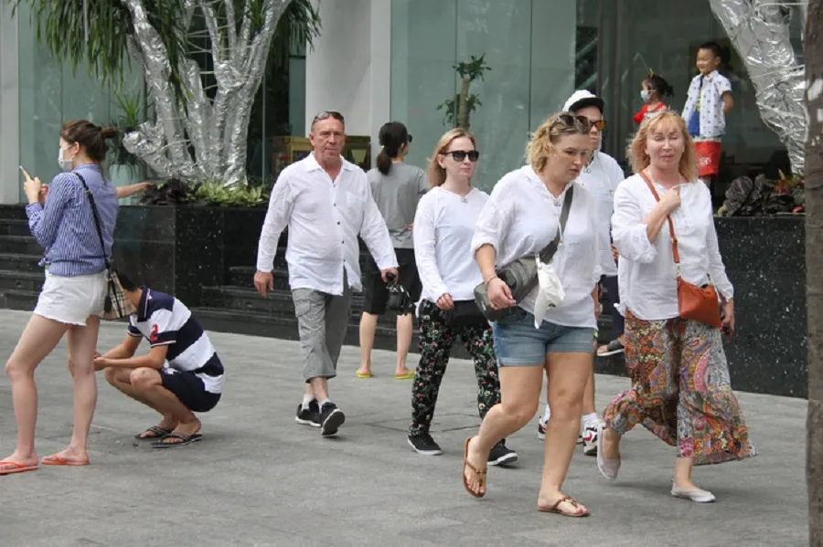 Khách Nga dạo phố Nha Trang trước khi xảy ra dịch COVOVID-19. ẢNH: Tổng Cục Du lịch.