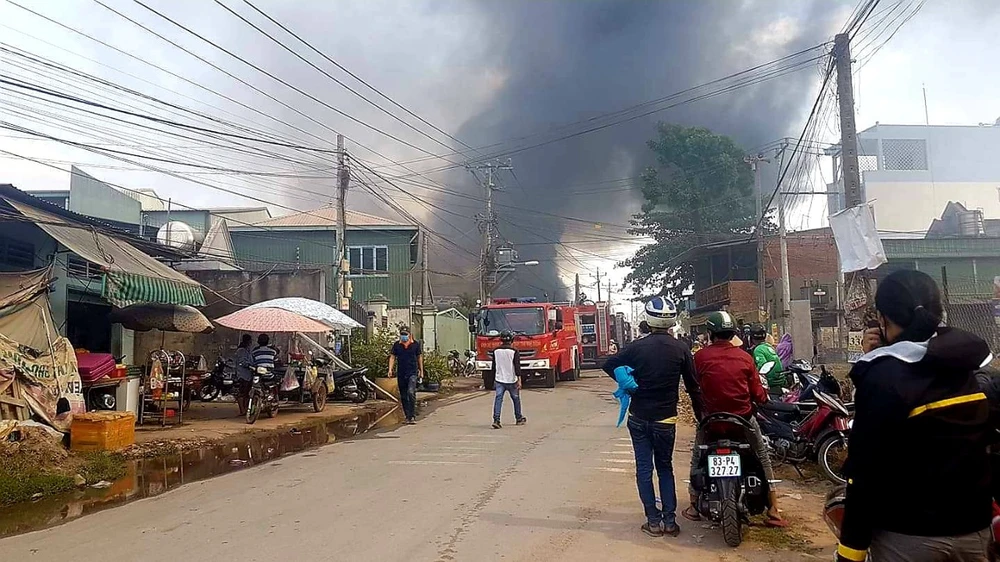 Do bên trong nhà xưởng đều chứa các vật liệu dễ cháy nên ngọn lửa ngày một bốc cao, khói bao trùm cả khu dân cư khiến nhiều người hoảng sợ di tản đồ đạc.