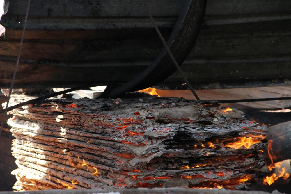 Cột khói bốc cao, bao trùm cả khu dân cư kế bên. Ảnh: KD