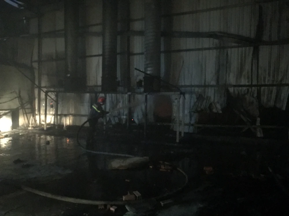 Đến trưa 3-4, lực lượng PCCC Công an TP Thuận An (Bình Dương) đã dập tắt được đám cháy xảy ra tại một công ty chuyên sản xuất đồ gỗ, nằm trong khu dân cư.