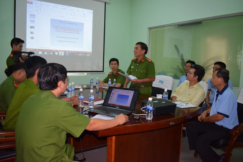 Buổi làm việc giữa Đoàn Cảnh sát PCCC Tp.HCM với đại diện công ty Hiệp Phước Thành. Ảnh: NGUYỄN TRÀ