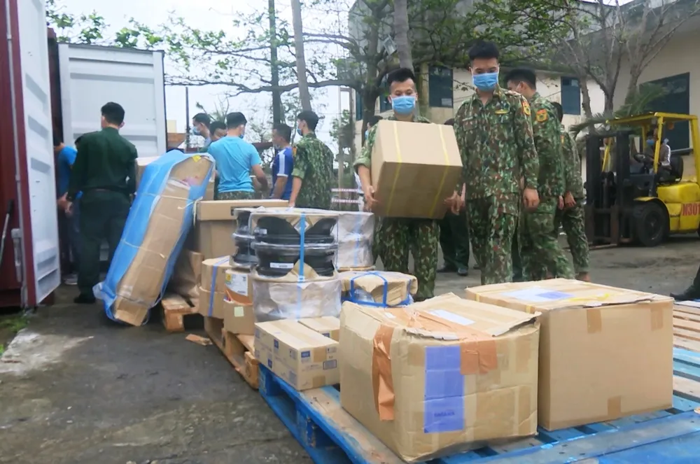 Lực lượng chức năng kiểm tra container nhập hàng lậu.