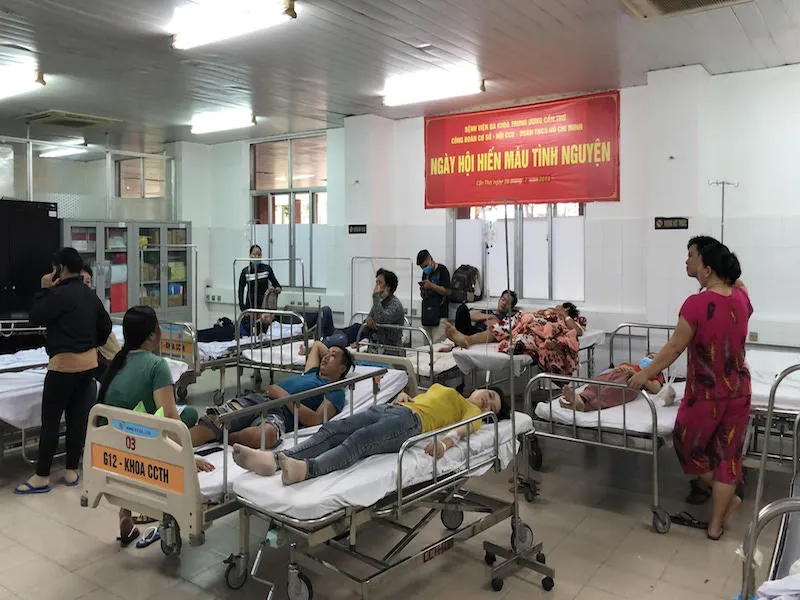 Các công nhân ngộ độc điều trị tại Bệnh viện Đa khoa Trung ương Cần Thơ. Ảnh: HD