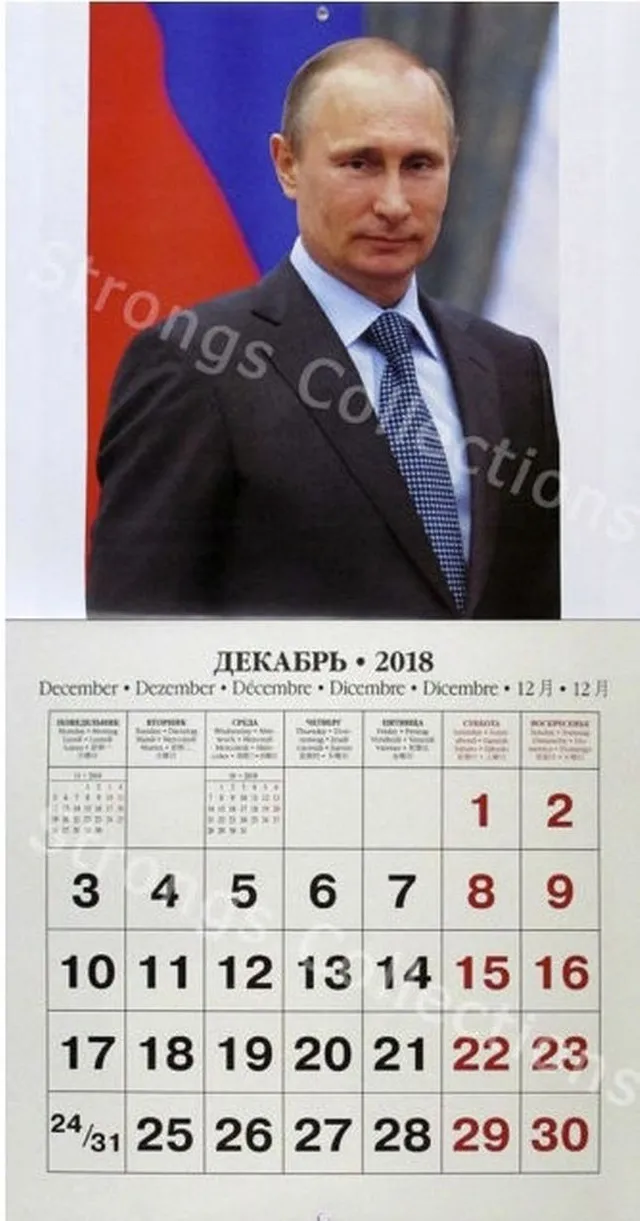 Chân dung ông Putin trong tờ lịch cuối cùng của năm. Ảnh:DM