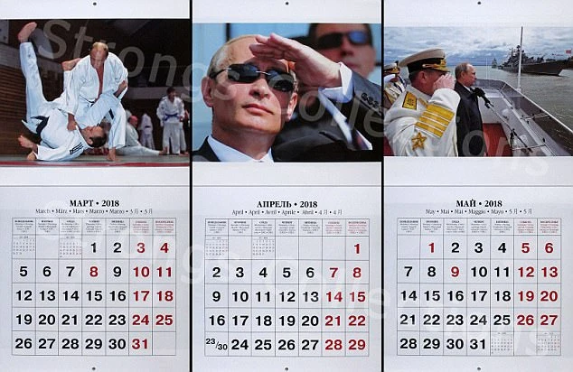 Tờ lịch tháng 3, tháng 4, tháng 5 lần lượt in hình Tổng thống Putin tập judo - môn thể thao yêu thích của ông. Tiếp đến là những hình ảnh ông Putin đang quan sát quân đội, cũng như đang phát biểu tại một sự kiện.