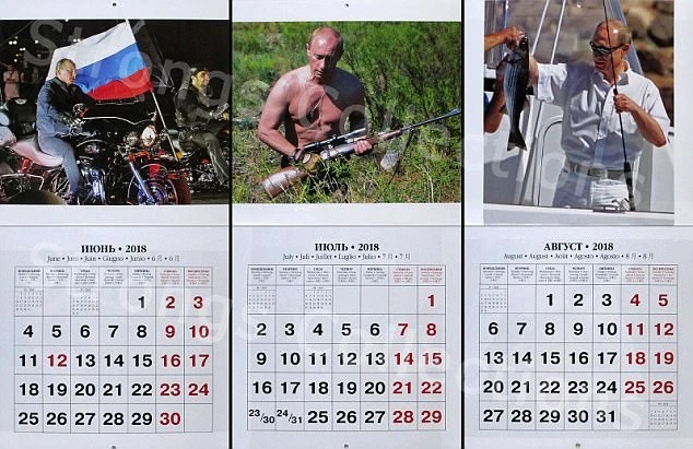 Ngoài những công việc chính sự, những thú giải trí của ông Putin cũng được nhà in chọn lựa rất kỹ lưỡng. Tổng thống Putin được nhìn thấy lái xe phân khối lớn, cởi trần đi săn và câu cá trong tờ lịch tháng 6,7, và 8.