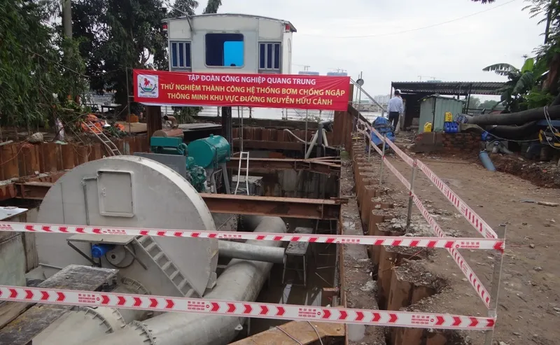 Máy bơm chống ngập đường Nguyễn Hữu Cảnh được cho có công suất lên đến 96.000 m3/giờ. Ảnh: KB
