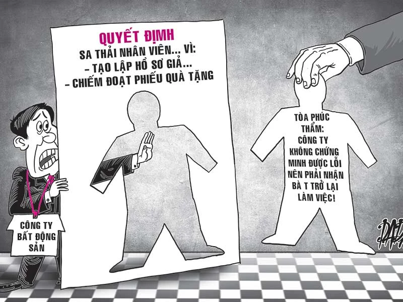 Theo bà T., đầu năm 2016, công ty yêu cầu giảm lương, bà không đồng ý nên công ty “tìm cớ sa thải trái pháp luật”. Cụ thể, tháng 6-2016, công ty họp xử lý kỷ luật lao động bà với ba sai phạm: Tạo lập hồ sơ giả mạo trị giá gần 300 triệu đồng để lấy tiền công ty, chiếm đoạt phiếu quà tặng trị giá 50 triệu đồng, tự ý ký văn bản xác nhận công nợ với khách hàng làm công ty thiệt hại hơn 4 tỉ đồng. Tiếp đó, công ty ra quyết định sa thải bà từ ngày 24-6-2016 với hai sai phạm là tạo lập hồ sơ giả lấy tiền công ty và chiếm đoạt phiếu quà tặng.