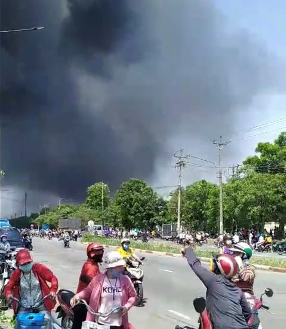 Nhiều công nhân gần đó hoảng loạn bỏ chạy. Ảnh: Người dân cung cấp