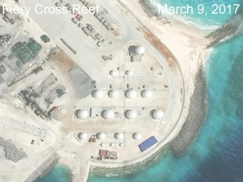 Hệ thống radar Trung Quốc xây phi pháp trên đá Chữ Thập (thuộc quần đảo Trường Sa của Việt Nam). Ảnh: AMTI