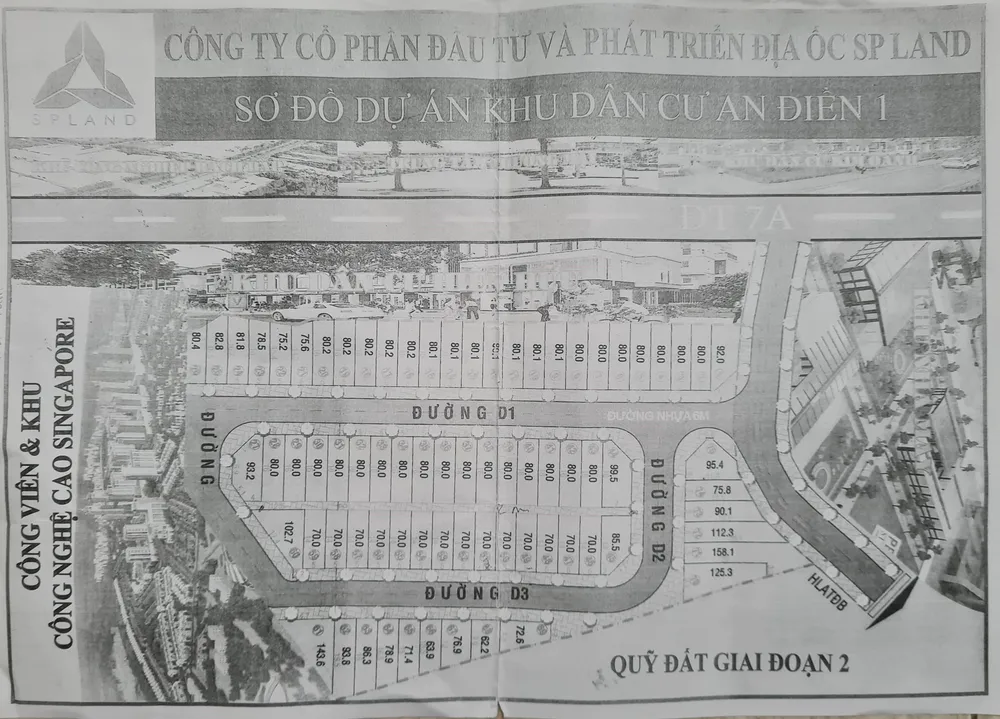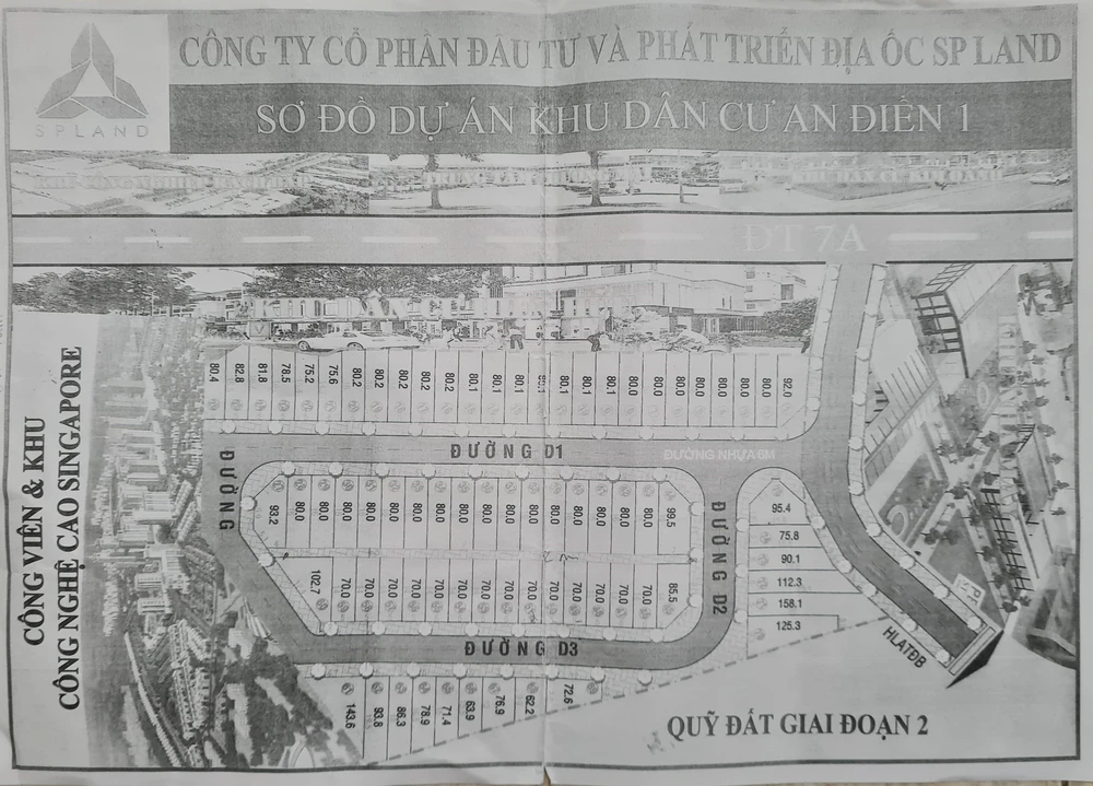 Tờ quảng cáo của công ty SP Land của dự án KDC An Điền 1. Ảnh: LÊ ÁNH