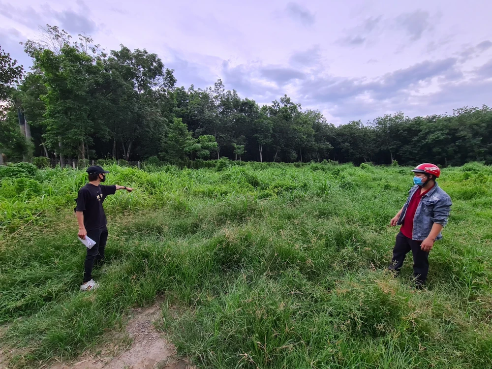 Theo ghi nhận, mảnh đất nơi được cho là dự án KDC An Điền 1 và An Điền 2 cách nhau khoảng hơn 1 km, rộng khoảng hơn 2 ha. Đây chỉ là khu đất cây rừng và cây cao su mọc um tùm. Ở đây, không có bất cứ một dấu hiệu nào cho thấy đây là một dự án khu dân cư đang xây dựng. Thế nhưng, công ty SP Land đã bán đất cho người dân từ cuối năm 2018.