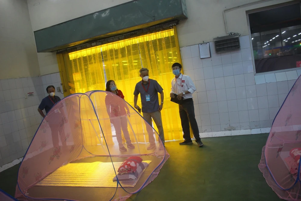 Ngày 15-7, Tổ công tác thuộc Bộ phận Thường trực đặc biệt Bộ Y tế tại TP.HCM cùng một số cơ quan quận Tân Phú đã kiểm tra công tác bố trí ăn ở cho người lao động ở các công ty sản xuất mặt hàng thiết yếu, phục vụ nhu cầu hằng ngày.