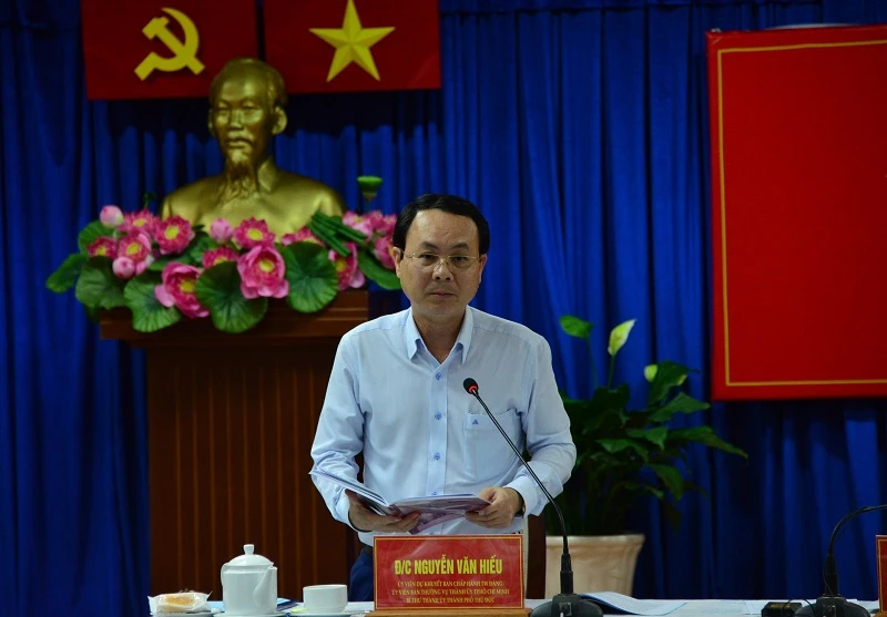 Bí thư Thành ủy Thủ Đức Nguyễn Văn Hiếu phát biểu tại buổi làm việc. Ảnh: TÁ LÂM