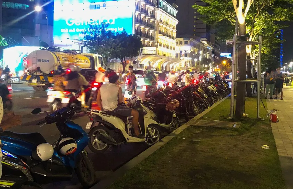 “Tôi thường gửi xe bên đường Nguyễn Huệ để đi bộ đến công viên, đi khá xa. Tới đây rồi thì thấy nhiều người vô tư để xe dưới lòng đường, thêm vào đó, các xe bán hàng rong buôn bán tràn lan dọc cả công viên. Họ chèo kéo, giành khách. Xe máy khách để dưới lòng đường và họ trông coi xe miễn phí nhưng phải mua nước, mua bánh với giá cao hơn các nơi khác. Một ly trà tắc, xoài lắc giá 30.000-35.000 đồng” - chị Phan Vy (ngụ quận Tân Bình, TP.HCM) cho biết.