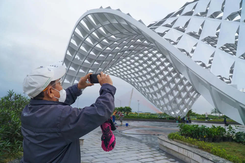 Công trình mái vòm thu hút nhiều người đến chụp ảnh lưu niệm. Ảnh: BT.
