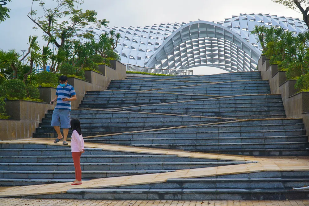 Bậc thang tại công viên được thiết kế theo kiểu dích dắc độc đáo. Ảnh: BT.